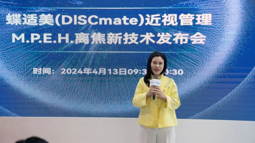 蝶适(DISC)创始人邓蕙欣女士发表了深情感言,她衷心感谢研发团队的辛勤付出和行业专家的鼎力支持,让蝶适(DISC)能够突破技术难关,成功推出蝶适美(DISCmate)微透精嵌镂空近视管理镜片。蝶适(DISC)作为站在眼视光行业前端的民族品牌,主动担负起保护全球眼健康和民族自主创新的大旗,为眼视光贡献出一份重要力量。