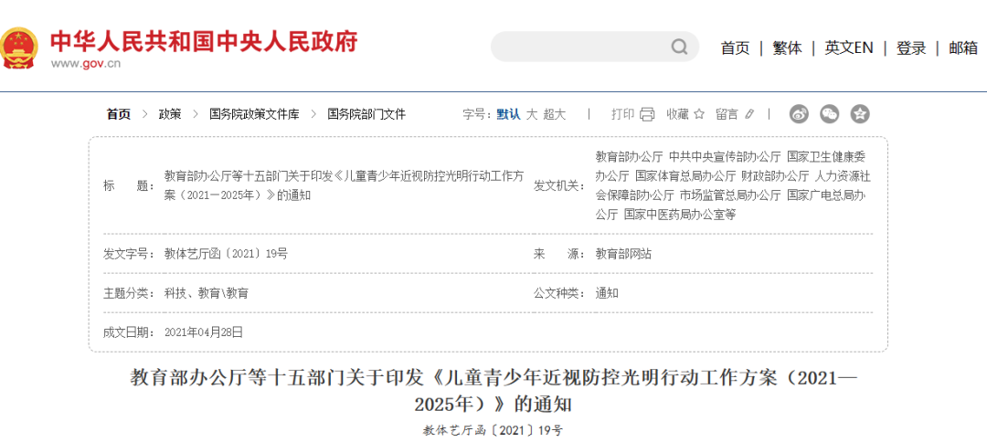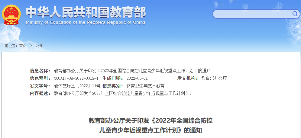 《2022年全国综合防控儿童青少年近视重点工作计划》